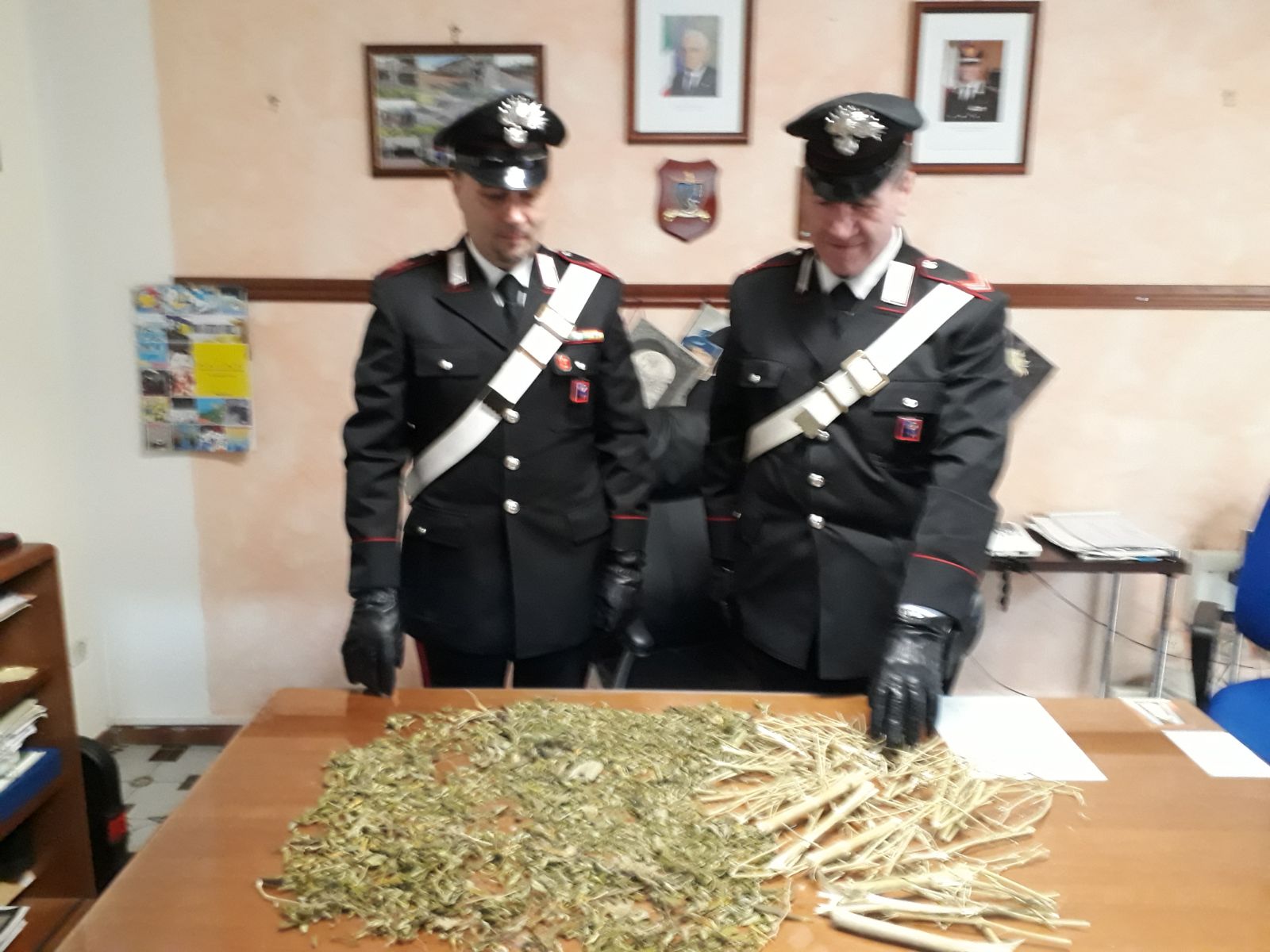 Durante la perquisizione, i militari operanti rinvenivano, occultata nella camera da letto del 41enne, custodita in una busta di cellophane, una piantina di marijuana, già essiccata, dell’altezza di cm 30 circa, e varie foglie di analoga sostanza, il tutto del peso complessivo di grammi 277.