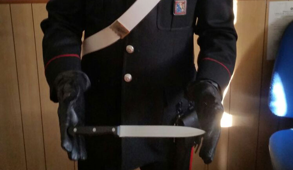 I familiari, spaventati dall’attacco d’ira dell’uomo, hanno subito richiesto l’intervento dei Carabinieri che, giunti sul posto, dopo una certa resistenza hanno riportato alla calma il 50enne, sequestrando il coltello, avente una lama di 23 cm ed accompagnandolo in caserma per gli adempimenti di rito.