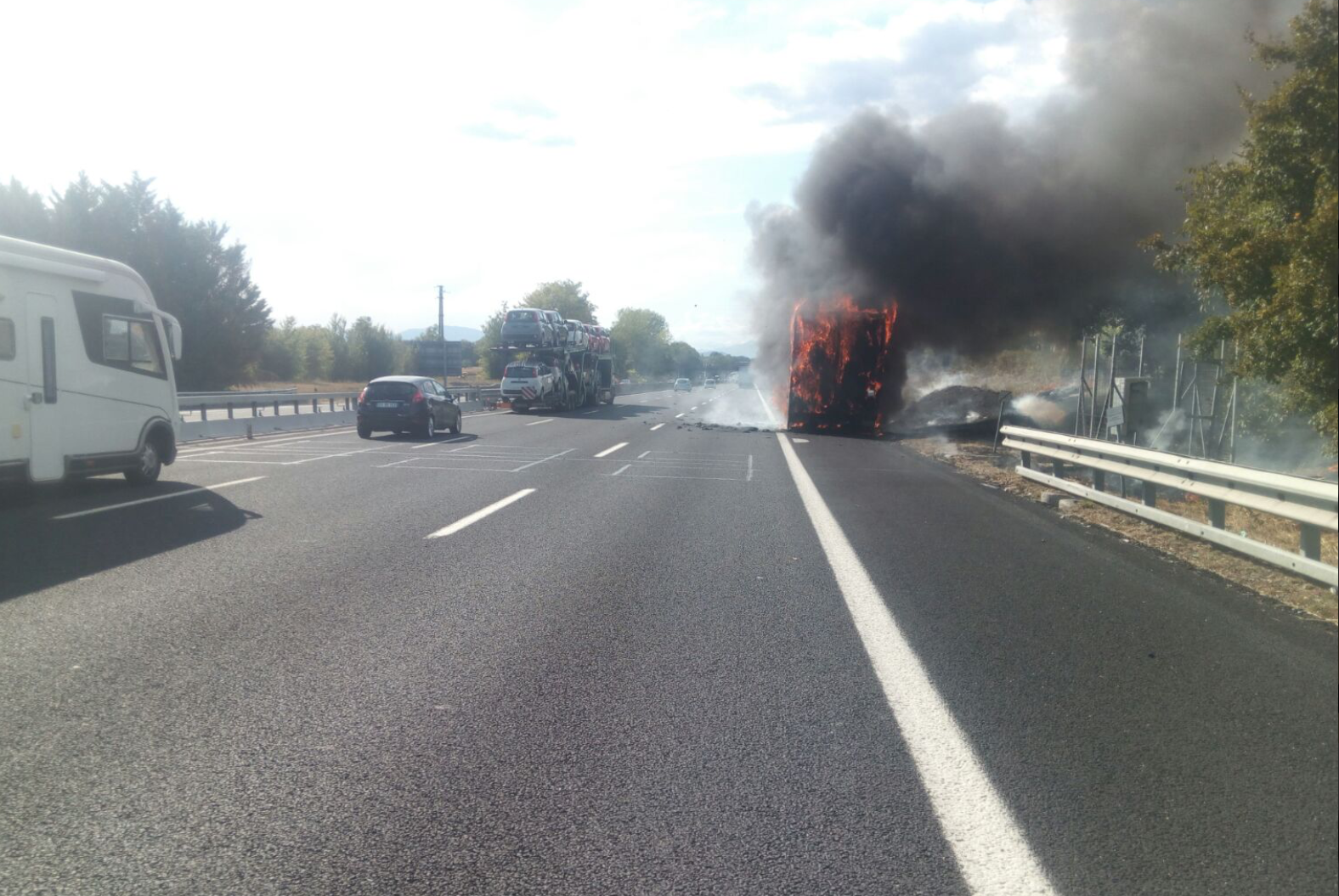 L’autista, appena si accorto delle fiamme, ha accostato il mezzo sulla corsia di emergenza cercando di spegnere l’incendio e chiedendo i soccorsi.