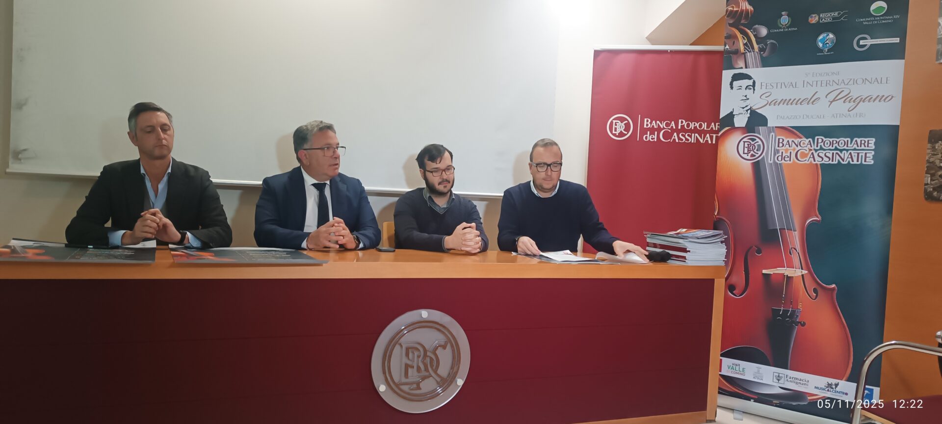 Questa mattina, nella Sala San Benedetto della Banca Popolare del Cassinate, è stato presentato il ricco programma di concerti che si estenderà per sei mesi e che dunque terrà sempre i riflettori accesi sulla musica di alto valore, in questo caso selezionata dai Maestri Alessandro Minci e Virgilio Volante (che è peraltro il pronipote di Samuele Pagano).