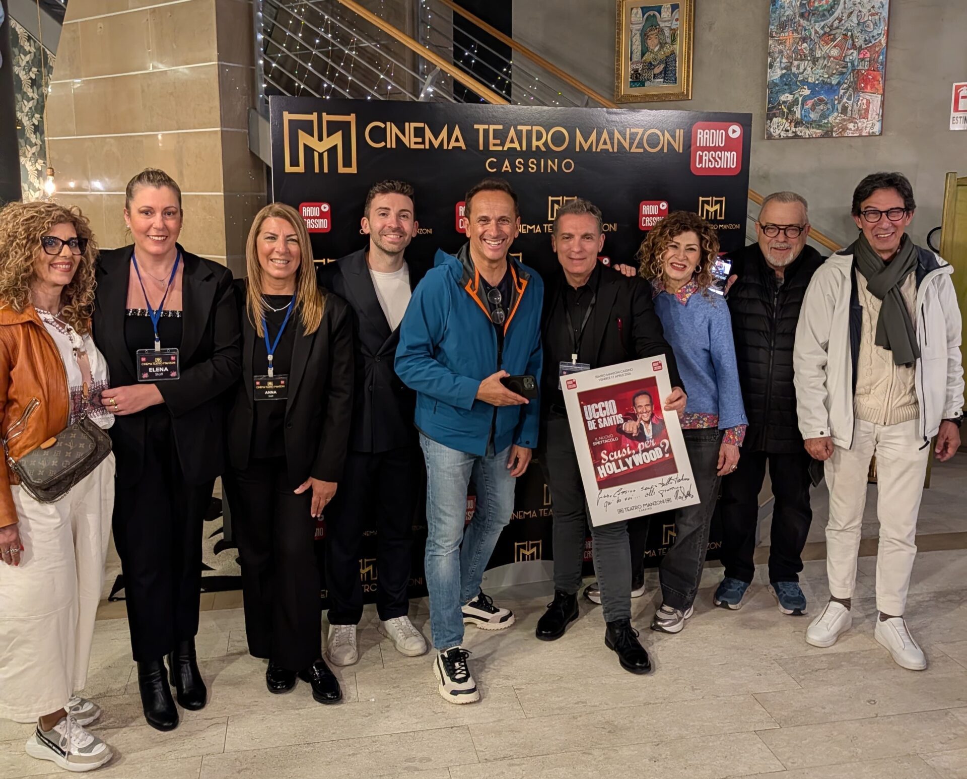 Serata esilarante, al Teatro Manzoni Cassino, grazie alla travolgente simpatia di Uccio De Santis che, con lo spettacolo “Scusi, per Hollywood?” è riuscito a far divertire senza sosta il numeroso pubblico presente. Coinvolgendolo a più riprese fino a portare le storie di alcuni degli ospiti in platea anche sul palco.
