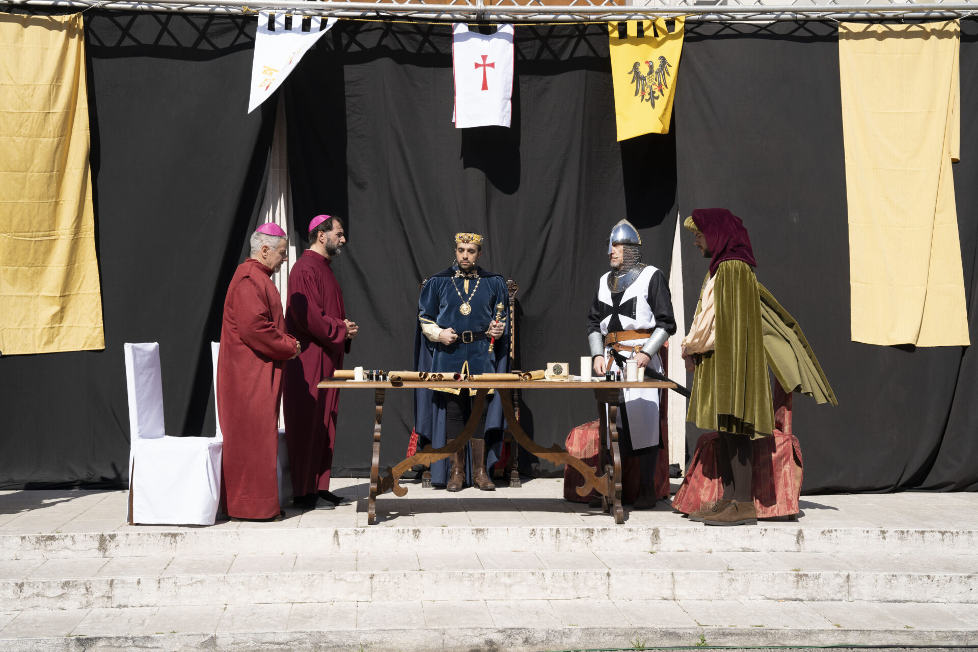 A raccontare passo passo i momenti salienti, un cronista dell’epoca al quale non a caso è dedicata una strada di Cassino. Si tratta di Riccardo Da San Germano. Colui che si occupava di raccontare anno per anno tutti fatti accaduti, trasferendo così alla storia gli eventi del territorio.Al termine della rievocazione della “dieta”, il pubblicoha potuto assistere, nel cortile del Palagio Badiale, ad una rievocazione della quotidianità della vita del tempo.Ad accompagnare i visitatori nella vecchia San Germano, attraverso un percorso guidato, un team di guide esperte.