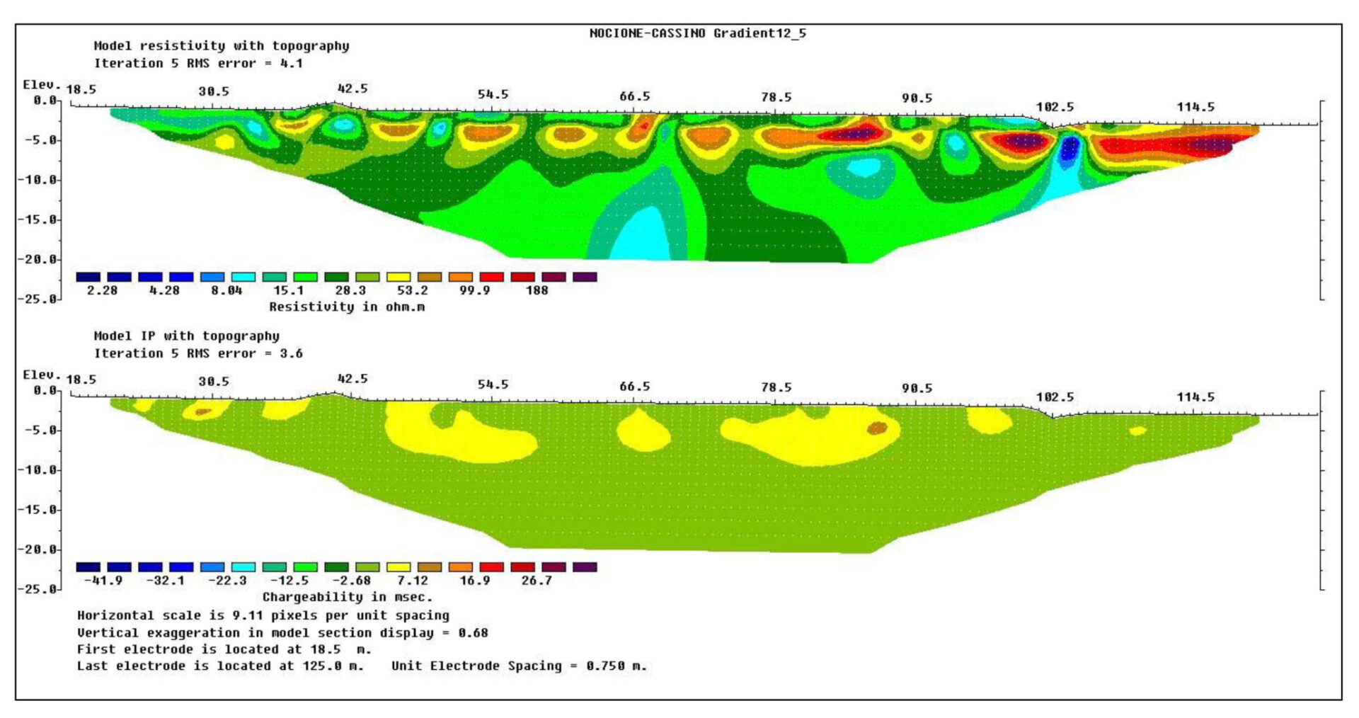 L’indagine ha evidenziato valori anomali di resistività e caricabilità anche al di fuori dell’area delle particelle catastali oggetto di studio, lasciando presumere che ci possano essere state attività anche nei terreni circostanti a quello esaminato.