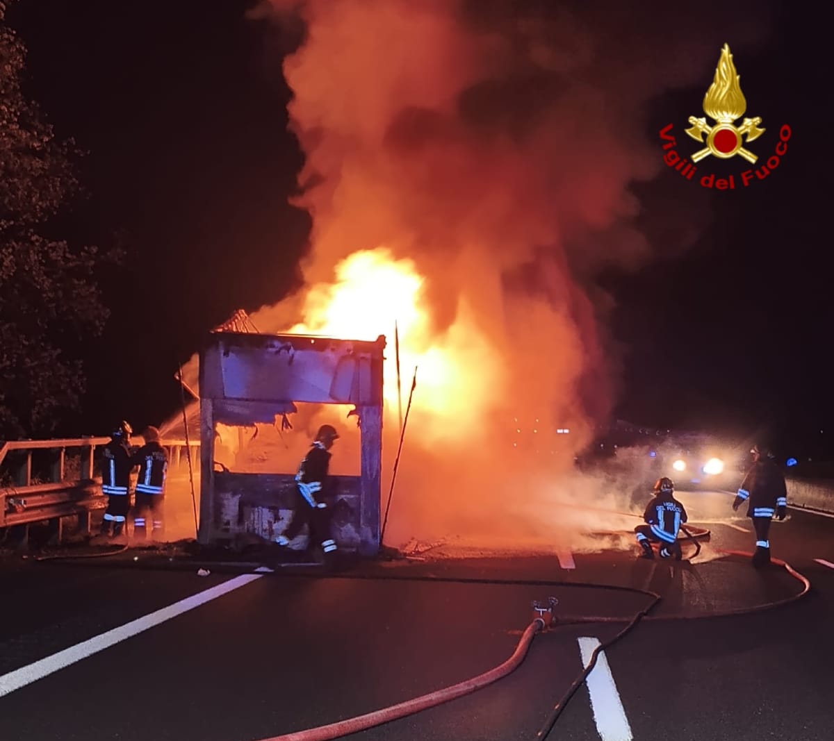 Salvo dalle fiamme il trattore stradale che trainava il semirimorchio. È stato prontamente sganciato.