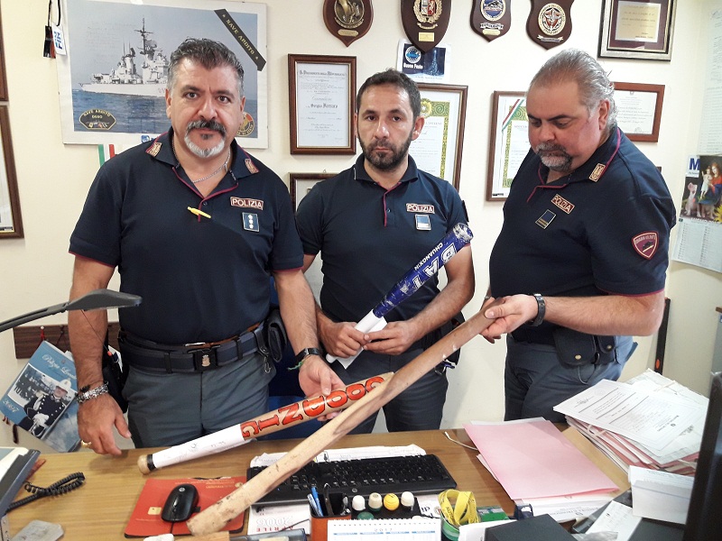 All’interno dell’auto i poliziotti rinvengono un bastone di legno lungo 83 cm, tipo manico di ascia, che viene sequestrato.
