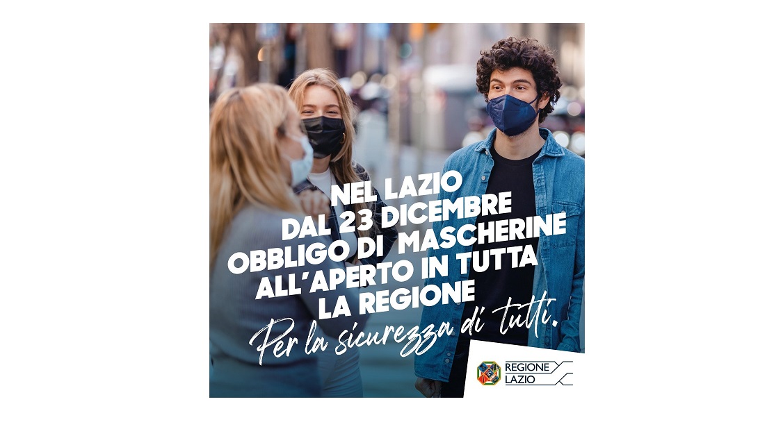 1. A decorrere dalle ore 00:00 del 23 dicembre 2021 e fino alle 24:00 del 23 gennaio 2022 è disposto l’obbligo, su tutto il territorio regionale, di indossare la mascherina di protezione individuale nei luoghi all’aperto, durante l’intera giornata, ferme restando le disposizioni vigenti in materia di Certificazione Verde Covid-19;