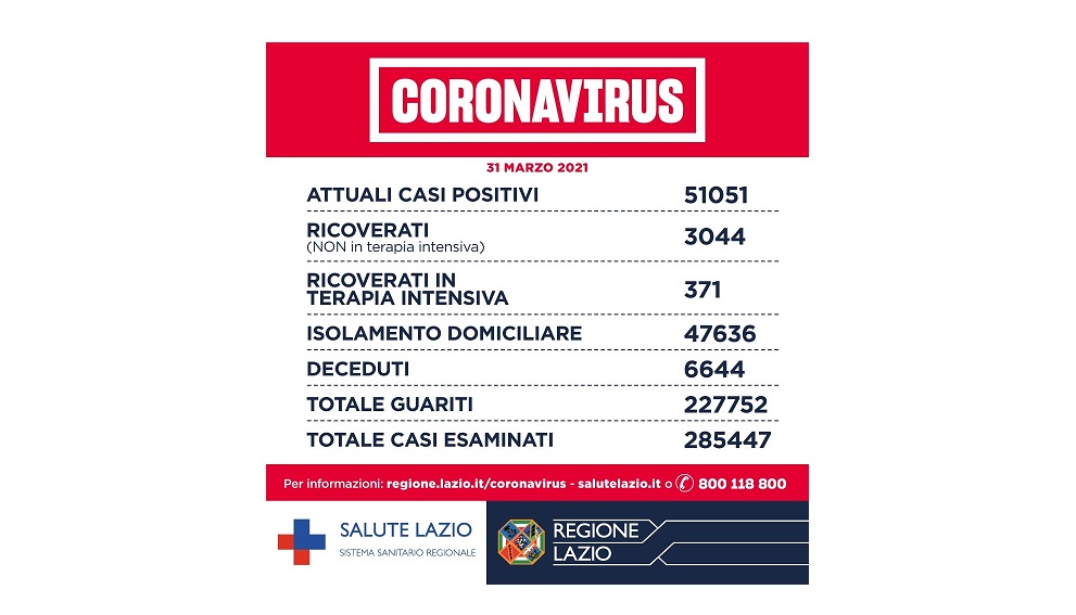 Nella Asl di Latina sono 104 i nuovi casi e si tratta di casi isolati a domicilio o con link familiare o contatto di un caso già noto. Si registrano due decessi di 73 e 82 anni.