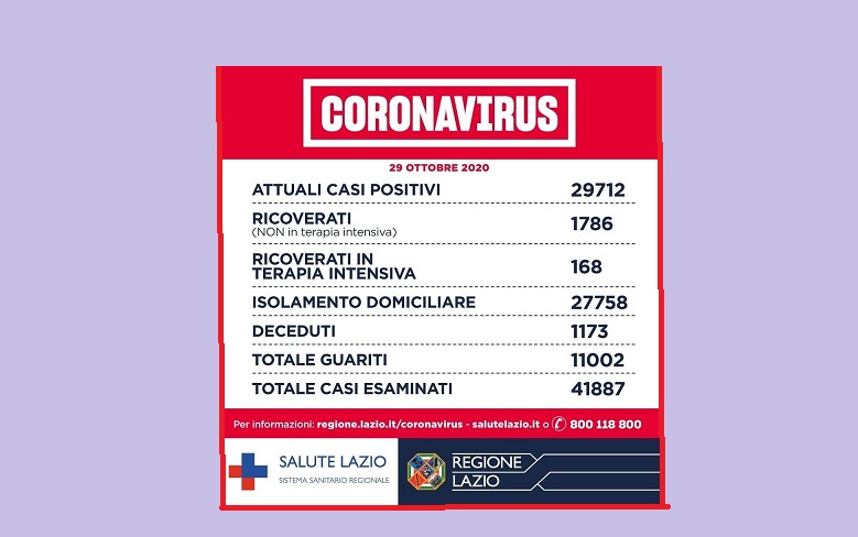 Sono 1995 i nuovi casi positivi della regione Lazio dove si registrano ben 15 decessi; nelle province di Frosinone e Latina i nuovi contagi sono, rispettivamente, 184 (leggero calo) e 136 (stazionari).
