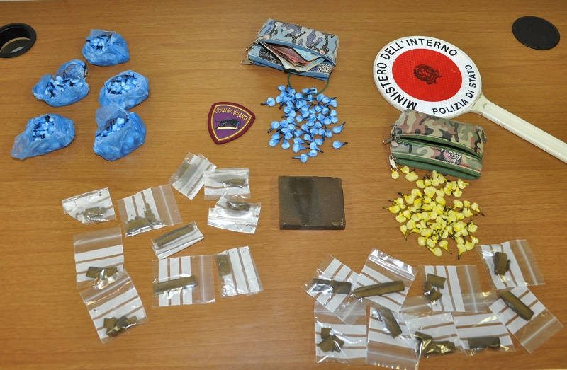 I due stavano fuggendo verso una cantina. Qui è stato trovato un piccolo magazzino dello spaccio, con hashish in bustine o in panetto, e bilancini di precisione.