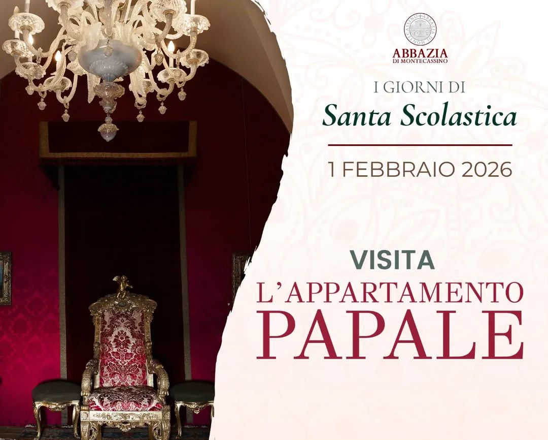Per la prima volta in via esclusiva, l’Abbazia di Montecassino aprirà al pubblico le porte dello storico Appartamento Papale. A partire da domenica 1° febbraio, liberamente, e per tutto il resto del mese su prenotazione, sarà possibile visitare questo luogo dal fascino senza tempo, impreziosito da decorazioni, quadri e arredi d’epoca.