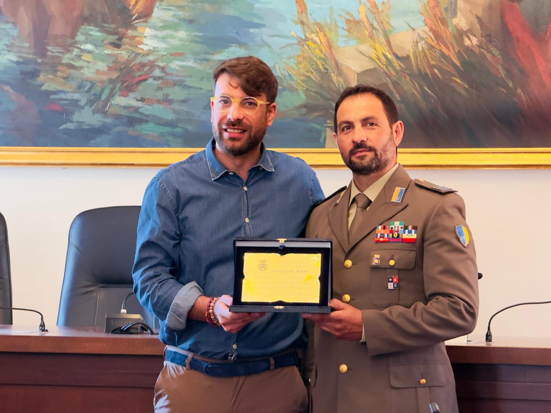 Non è finita qui, perché il Maresciallo Soria è stato convocato dal sindaco di Sora, Luca Di Stefano, che nel palazzo comunale ieri gli ha voluto donare una targa di ringraziamento al militare in servizio al 41° RGT.Cordenons. Alla cerimonia ha presenziato il Comandante, Col. Alfredo Russo.